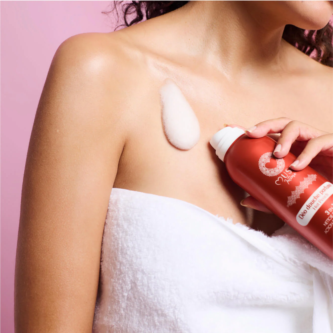 Sa mousse onctueuse se rince facilement et laisse la peau douce, hydratée et délicatement imprégnée de Hot Peach, un accord vibrant de pêche juteuse, de vanille suave et de musc blanc, qui parfume la peau d’un sillage fruité et envoûtant.