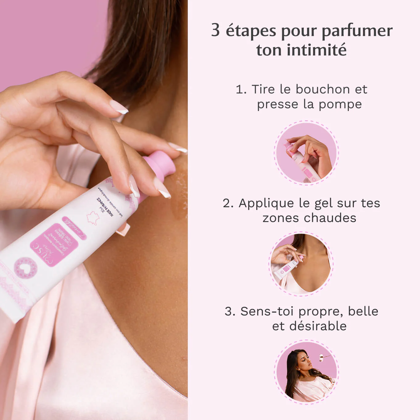 C'est le fameux Gel Parfumant ! Grâce à ce concentré de parfum, ne sois plus jamais gênée par les mauvaises odeurs corporelles ! Une sensation de fraîcheur garantie pour te sentir féminine et propre tout au long de la journée.